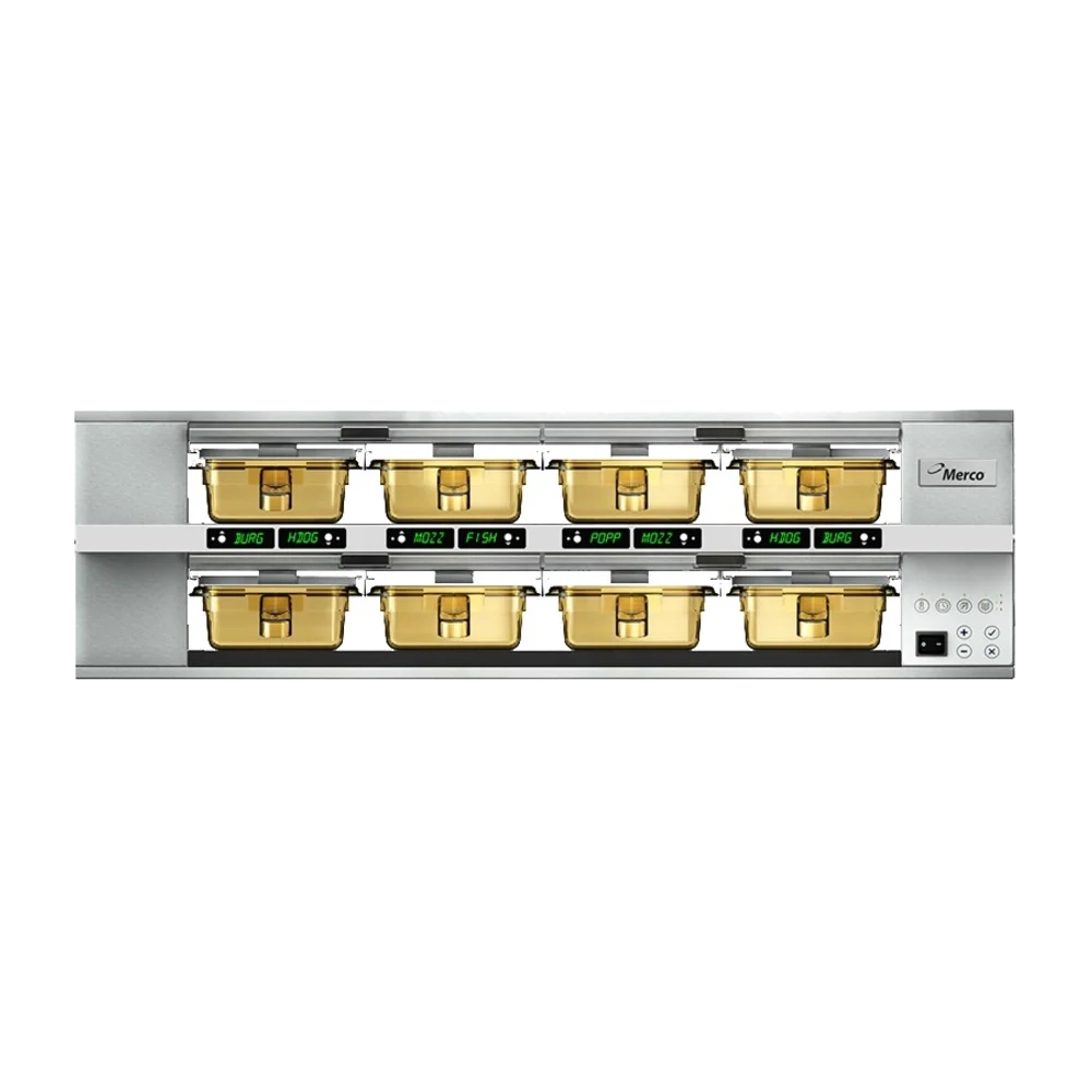 Gabinete de mantenimiento con calefacción MercoMax™, eléctrico, sobremesa, (2) estantes, (4) bandejas por capacidad de estante (bandejas no incluidas), tecnología DuoHeat con flujo de aire convectivo, controles digitales, barras de temporizador de montaje empotrado, USB, construcción de acero inoxidable, 2200-3120 W, 11.0-13.0 amperios,220-240V, CEE 7/7, cULus, clasificación UL EPH.